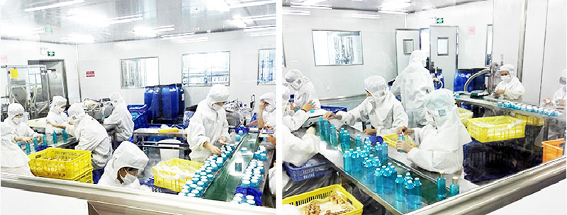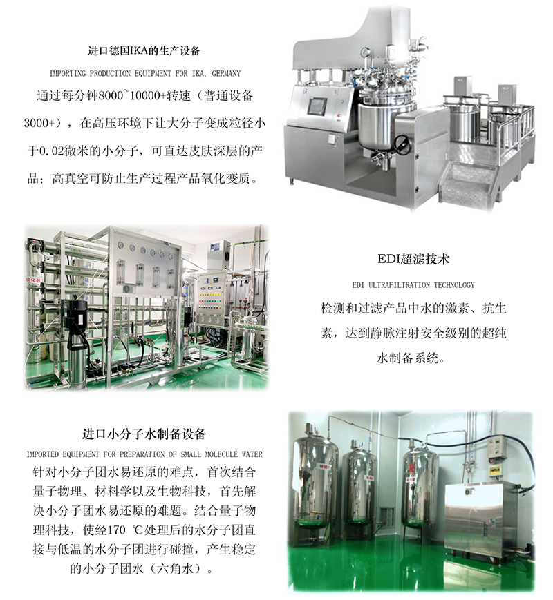 引進國際先進的行業技術設備和生產工藝,擁有10萬級GMPC及ISO22716雙認證的標準化車間,擁有多條國內先進的生產線和國際標準的品質控。